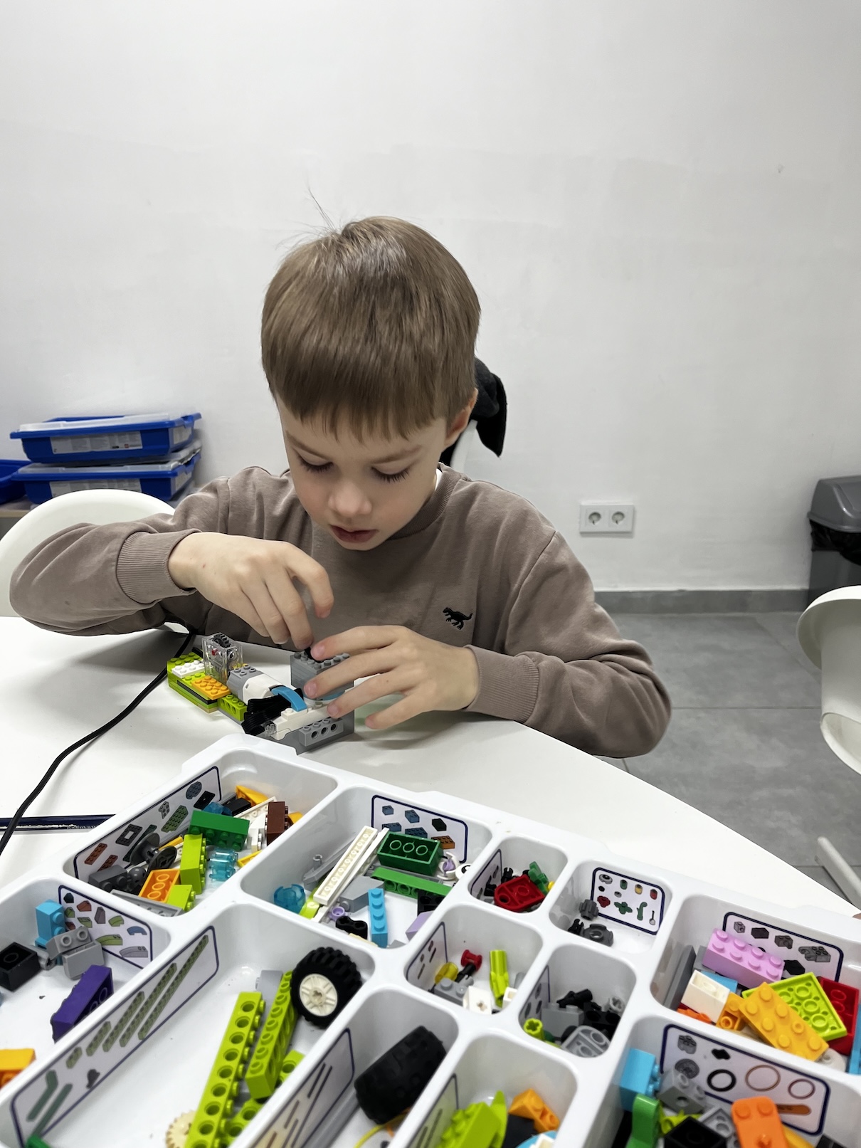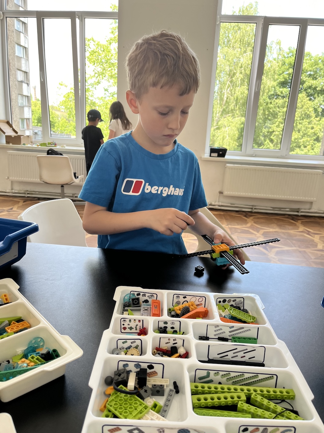 Стартують діти зазвичай з Level 1 - "Cвіт навколо нас". Тут ми будемо вивчати різних тварин та їх особливості. Яким чином плавають дельфіни, як швидко можуть повзати павуки, наскільки висока жирафа, вчимося складати різних тварин і перевіряємо наші знання на практиці. Також у нашій програмі є динозаври, транспорт і різні механізми. Заняття забезпечують розвиток дрібної моторики у дітей, у поєднанні з інтелектуальними завданнями. Відбувається активація роботи обох півкуль головного мозку. Діти працюють у парах та в команді. Виконання завдань покрокові інтерактивні.